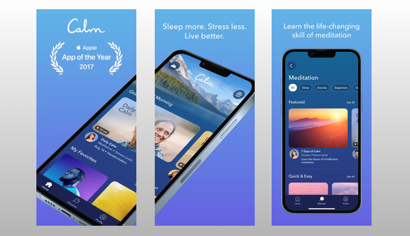 Improve your health and happiness with the calm app. Help improve your sleep quality, reduce your anxiety and stress levels or just to improve your focus.